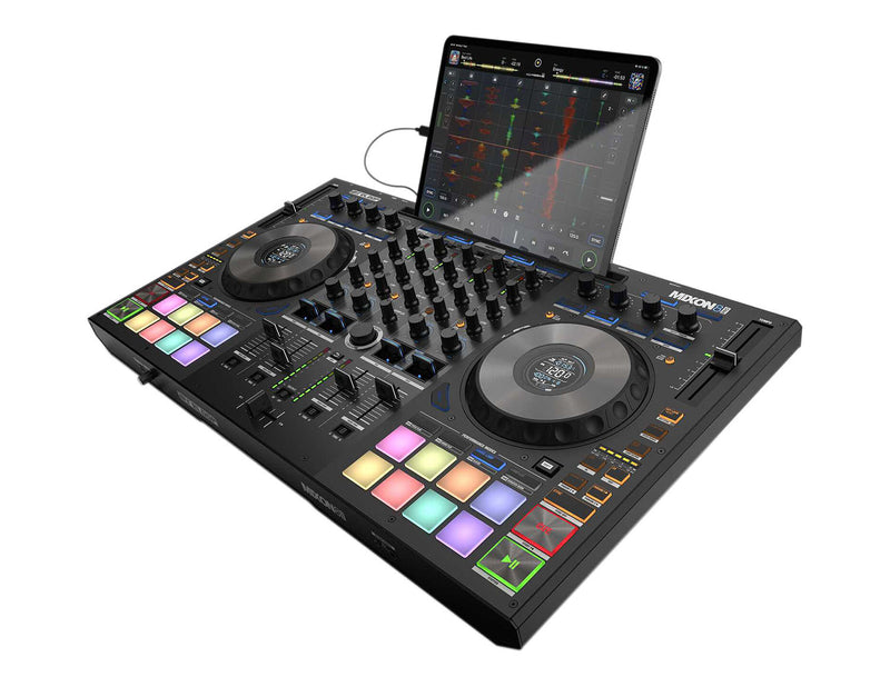 The Reloop Mixon 8 Pro is a 4-channel DJ Controller. A powerful hybrid DJ controller in a class of its own. The Reloop Mixon 8 Pro effortlessly provides a complete, balanced set of features for demanding professionals. Flexible connectivity options and compatibility with two industry-leading software solutions.