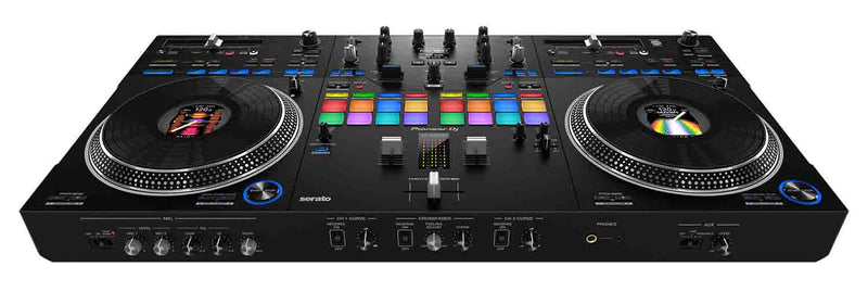 The Pioneer DDJ-REV7 is a Scratch Style 2-Channel Professional DJ Controller for Serato DJ Pro Black.The DDJ-REV7 is built to help you get the most from the Serato DJ Pro performance software and boasts a brand-new design that includes large, motorized jog wheels with On Jog Display to create a tactile connection between you and your music. The layout of this 2-channel unit emulates a professional DJM-S mixer + PLX turntable setup and includes specialized features for open-format and scratch DJs.