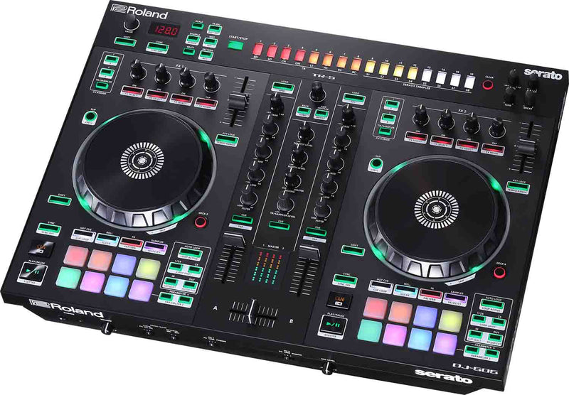 The Roland DJ-505 is a two-channel, four-deck Serato DJ Pro controller that blends the advanced performance capabilities of Serato DJ Pro with the legendary sounds and sequencing of Roland’s TR-909, TR-808, TR-707, and TR-606 drum machines. The DJ-505 gives you the tools to move beyond mixing music to creating beats and rhythms on the fly that sync to your Serato DJ Pro tracks, enabling the creation of unique transitions, live remixes, beefed-up classic tracks, or your own original music. Like the flagship DJ-808 and compact DJ-202 controllers, the DJ-505 is a powerful and inspiring instrument that allows unparalleled flexibility to DJ, remix, and produce, empowering exciting new approaches to music performance. And with its standalone mixer functionality, narrow footprint, and Serato DVS upgrade path, the DJ-505 is an ideal controller to pair with turntables or CD players.