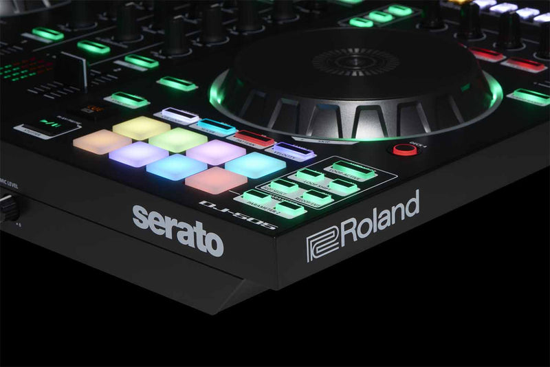 The DJ-505 is a two-channel, four-deck Serato DJ Pro controller packed with features, and the complete Serato Tool Kit is included as well. Its portability, coupled with a pro-grade build and advanced feature set, makes the DJ-505 ideal for mobile applications, club DJing, live performance, and production purposes alike. The built-in 24-bit/48 kHz audio interface and high-end Roland audio conversion for Master and Booth outputs ensure faithful reproduction of audio sources and clear, powerful sound. Balanced XLR outputs let you connect directly to a professional PA system, and you can monitor your mix via the Booth Outs as well as separate 1/4-inch and 1/8-inch Phones jacks. You also have a 1/4-inch TS mic input to add vocals or external instruments to your performance setup. Dedicated Serato DJ Pro controls allow quick creation and triggering of hot cues, loops, TR sounds, sequencer patterns, and samples, plus switching between four Serato decks with the Deck Select button. Use the channel filters or Serato FX (accessible via three FX Select buttons per deck) to finesse blends or accentuate scratches.