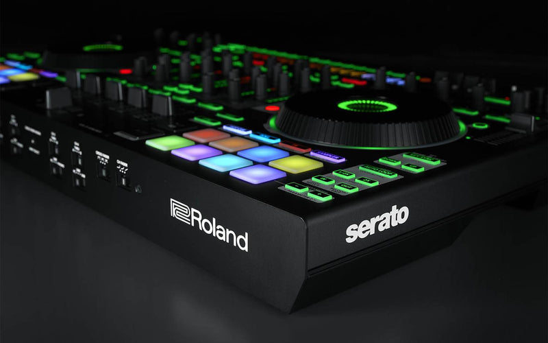 Built in Roland TR drum machine with 606, 707, 808, 909 kicks, snares, claps, and hi hats, Control the Serato Sampler with the TRS sequencer, Built in VT Voice Transformer with Pitch, Formant, Ducking and Serato key matching, Velocity sensitive RGB color pads for HOT CUE, ROLL, TR, SAMPLER and more.