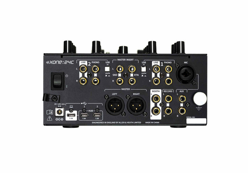 The Allen & Heath XONE:24C, 2+1 Channel Analogue DJ Mixer with Interface that blends analogue sound quality with flexible digital connectivity. Building on the foundations of the all-analogue Xone:24, the Xone:24C adds a high-quality USB[1]C interface and powered USB hub for easy integration with DVS, streaming, and production setups.