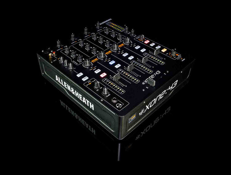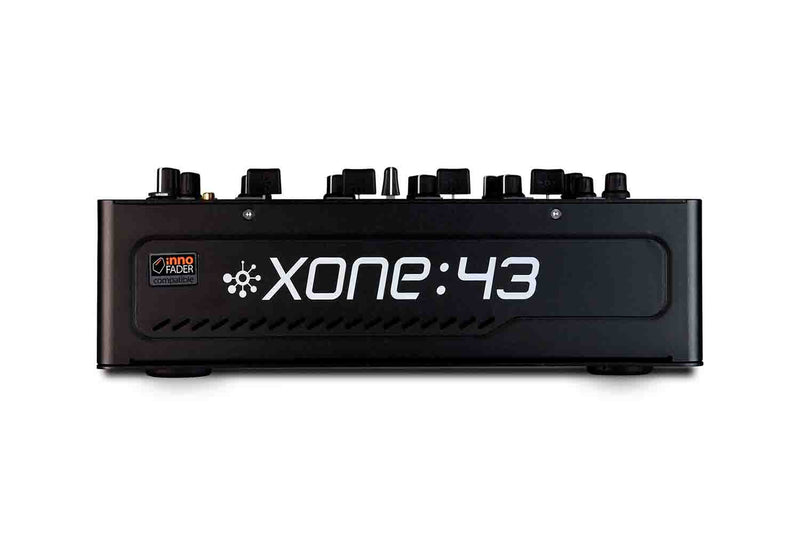 The Allen & Heath XONE:43 is a 4 Channel Analogue DJ Mixer. Created for DJs and electronic music purists, Xone:43 is a 4+1 channel DJ mixer that offers the very best of analogue audio quality, including the legendary Xone filter with resonance control, 3 band EQ, crossfader with three curve settings and X:FX for send/return to your favourite FX unit. The crossfader has three switchable curve settings for blending or scratching styles and can be easily replaced or upgraded to a custom Innofader for ultimate crossfader performance. With balanced XLR main outputs, independent booth and record outputs, Xone:43 excels in the club and in high end personal DJ setups.