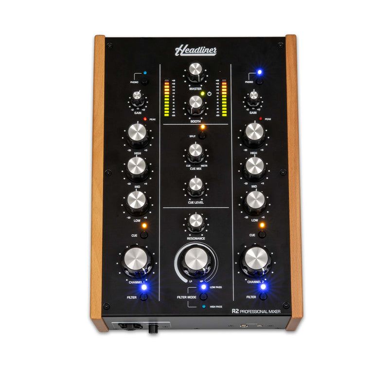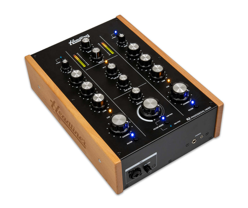 The Headliner R2 features genuine ALPS potentiometers, and a sturdy metal enclosure with stained wood side panels for a classic look that will complement any DJ setup. The modular internal construction, coupled with the external power supply connected via locking Mini XLR ensure superior audio performance.