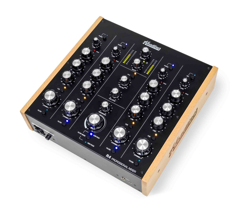The Headliner R4 stands as a testament to precision and warmth in the DJ realm. Whether spinning house, techno, or the timeless funk/soul/disco beats, this versatile mixer elevates your setup, ensuring your mixes stand out with exceptional quality and control.