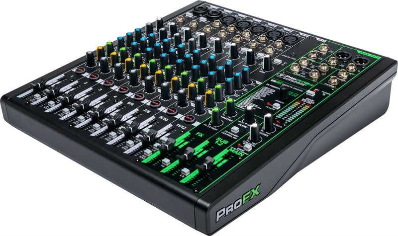 The Mackie ProFX12v3 is a 12-Channel Professional Effects Mixer with USB. Mackie ProFXv3 Series mixers are the ultimate affordable solution for live, home recording, and content creators. Everything you love about the series has been dialed up to 11. Best-in-class sound quality, versatility, and reliability that will have you hugging your mixer on a regular basis. Now with Onyx mic preamps that offer 60db of headroom, 24 built-in FX, and more. Record your tracks in 24-Bit/192kHz quality with 2x4 USB I/O and zero-latency hardware monitoring.