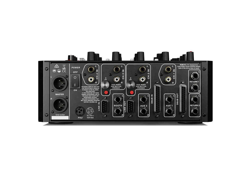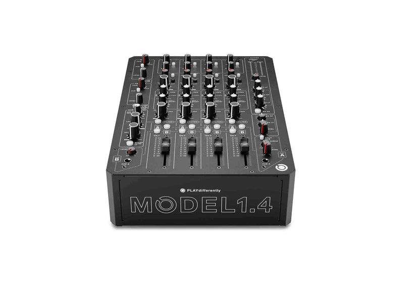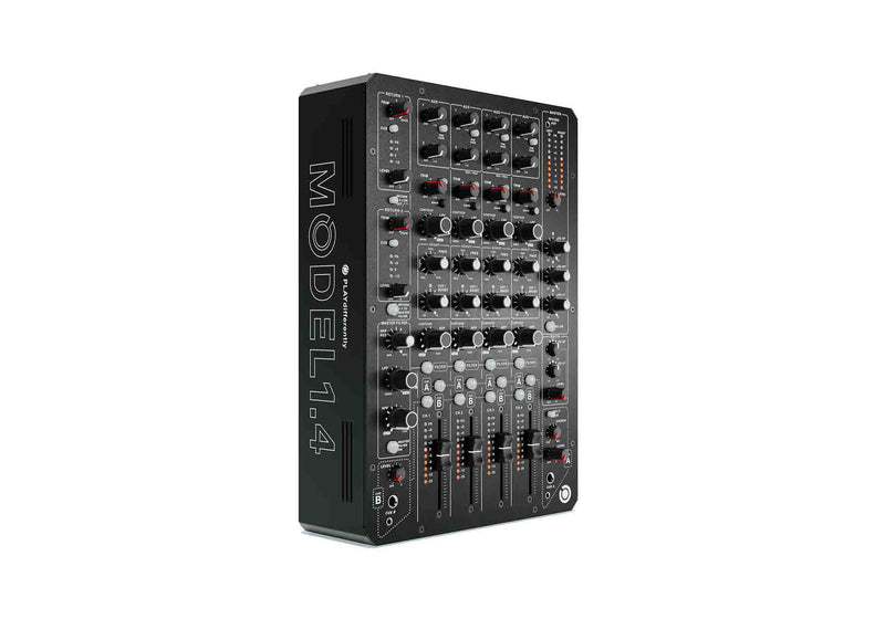 The PLAYdifferently MODEL 1.4 Premium Ultracompact 4 Channel Analog DJ Mixer Design Now we’re bringing MODEL 1 performance to an ultra-compact 4-channel design, ideal for home studio use, or as the ultimate tour-able analogue mixer…so you can take your analogue core wherever you go. Engineered by Andy Rigby-Jones and co-designed by Richie Hawtin with feedback from artists, clubs and engineers, MODEL 1.4 features the same uncompromising approach to build quality, precision and detail that set MODEL 1 in a class of its own. MODEL 1.4 can be used standalone or paired with a MODEL1 using unique mixer-link functionality to deliver an unrivalled 10-Channel Live mix experience.