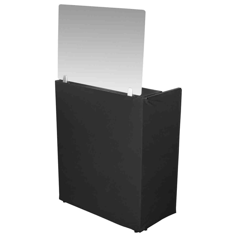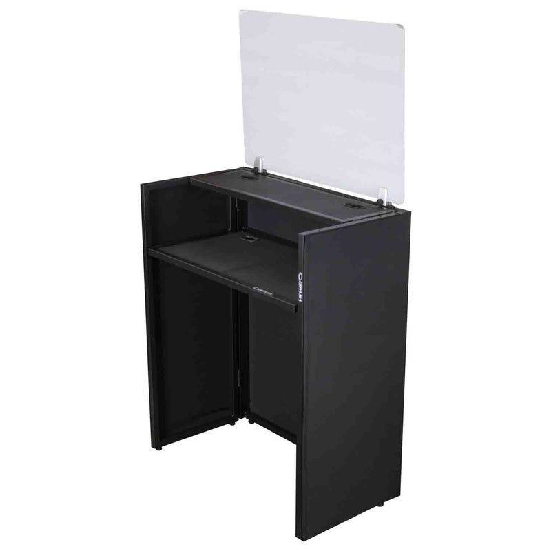 The Odyssey DJBOOTHC1 is a CONTROL DJ Booth. Approximate top surface measurements 39.5" x 9.5". Approximate bottom surface measurements: 33.25" x 19.5". The bottom tier surface height from the ground is approximate 33.5". Booth surfaces come with port holes for cable management. Includes sneeze guard. Includes black and white booth scrims. Includes booth carrying bag.