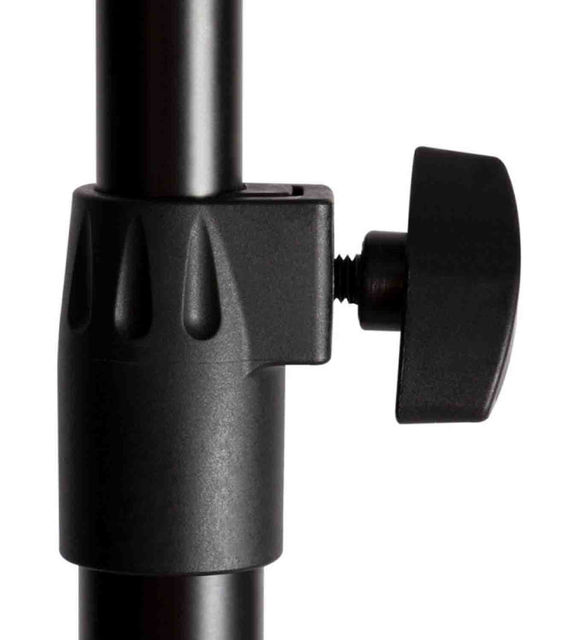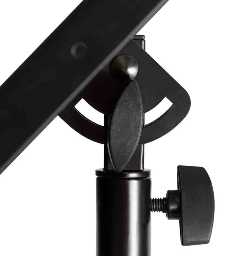 The Onstage LPT7000 Deluxe Laptop Stand - Black delivers reliable laptop access anytime, anywhere. This height-adjustable stand rests on the floor and elevates a laptop or other device to a comfortable viewing and operating level. The angle of the raised platform adjusts to enable ergonomic positioning. Padding on the platform increases grip and protects equipment from scratches. The wide tripod base of this DJ Stand provides a stable foundation while non-slip rubber feet keep the base firmly in place. The stand folds down for convenient storage and transportation.