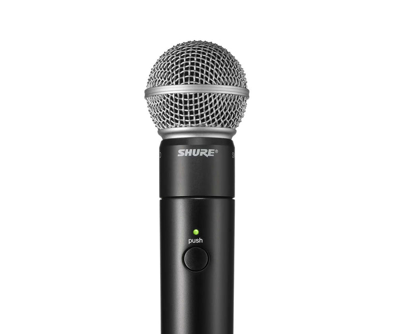The Shure MXW2/SM58-Z10 handheld transmitter, equipped with the SM58 capsule, is designed for reliable performance in wireless presentation and conferencing environments. Compatible with Microflex Wireless Systems, it offers intelligent bi-directional wireless functionality, with dual transmit antennas for optimized transmission regardless of hand positioning. Its programmable mute button allows flexible local or remote muting options, and it features standby mode to extend battery life during idle times. With an extended range of up to 160 feet and AES 256-bit encryption, this transmitter provides secure and clear sound transmission. The advanced lithium-ion battery provides up to 9 hours of continuous use and recharges in less than 2 hours, offering convenience and flexibility for all-day usage. A durable yet lightweight design, combined with anti-roll functionality, makes the MXW2/SM58-Z10 ideal for professional settings.