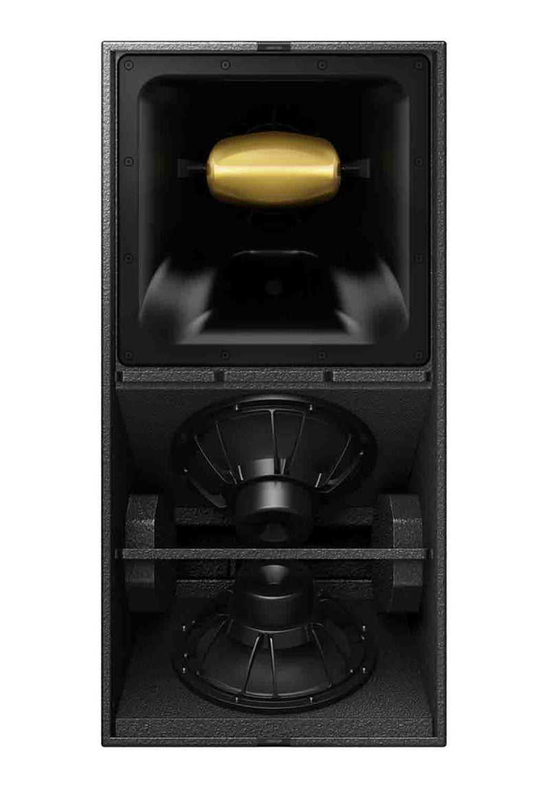 The 8-inch mid-range driver and the 1-inch compression driver are attached to the integrated waveguide with their depths perfectly aligned to minimise the difference of physical distance and reduce cancellation around the crossover frequency. This unique Bi-horn combines mid and high frequencies in a deep position inside the waveguide, improving the blend of the sounds compared to the performance of a conventional separated horn structure. The waveguide’s curved shape perfectly controls dispersion at 50 degrees horizontal and 35 degrees vertical, providing natural sound with high SPL in the targeted area while reducing the sound pressure outside that area.