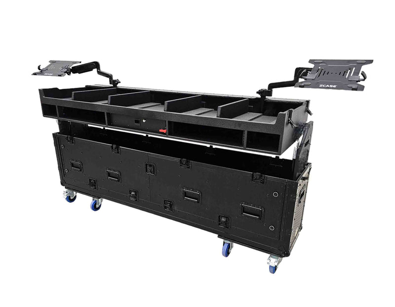 The Zcase hydraulic case features a robust construction with high-quality materials to withstand the rigors of frequent travel. The easy retracting hydraulic mechanism allows for quick and seamless access to your equipment, making setup and teardown a breeze. With custom-fitted compartments, this case securely holds four Pioneer CDJ3000 players and one V10 mixer, keeping them firmly in place and protected from shocks and vibrations.