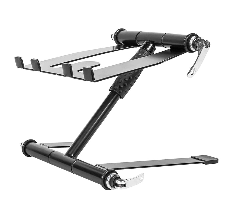 The Headliner HL20005 is a Digistand Pro Laptop Stand in Black. The Headliner Digistand Pro is a fully-adjustable laptop stand for DJ’s and musicians. Its compact folding design and included carrying pouch make it ideal for storing and traveling. This versatile stand can be configured in C or Z positions to fit into most workspaces, and features a telescoping neck with 360˚ rotation. Made from durable powder coated steel with an aluminum alloy cam-locking system, the Headliner Digistand Pro offers the ultimate combination of strength and stability. The cam handle and tensioning knob are used to easily adjust the stand to the perfect position while performing.
