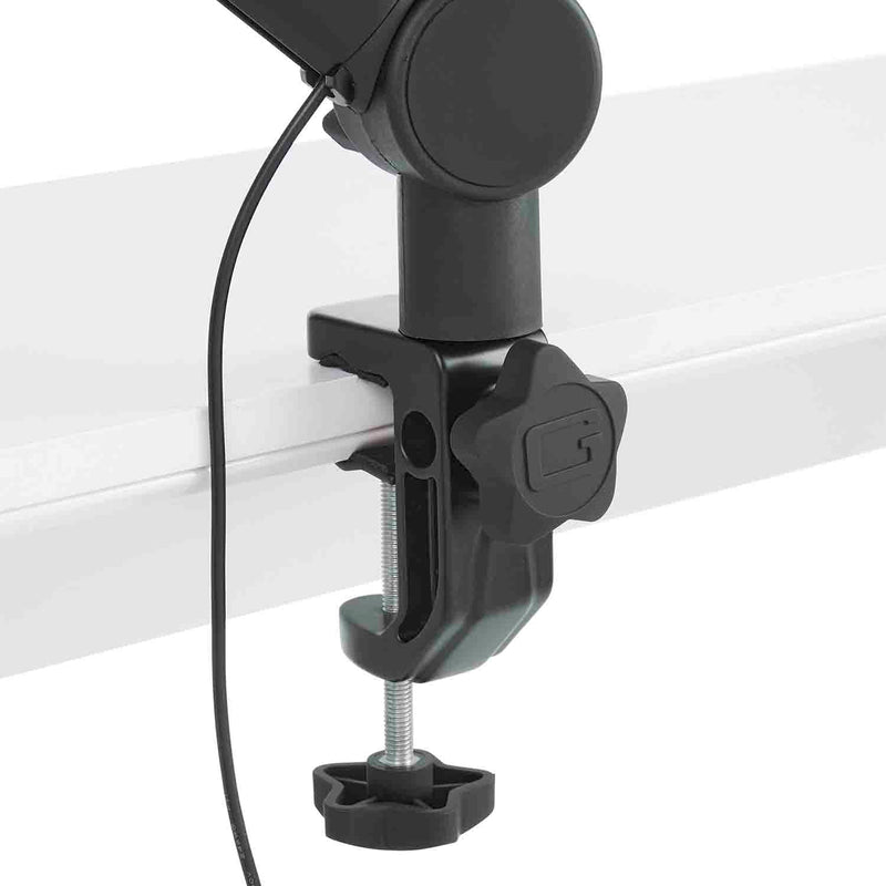 The stand is fully adjustable for desired mic placements and will clamp or directly mount to surfaces up to 2.17”/55mm in thickness, including the ability to rotate a full 360-degrees. To reduce the potential for noisy interruptions during sound-sensitive recordings, the stand is engineered specifically to produce minimal sound when being moved.