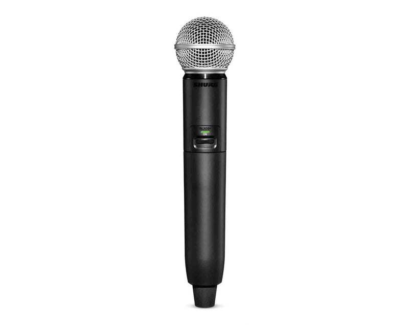 The Shure GLXD24+/SM58-Z3 Digital Wireless Handheld System with SM58 Vocal Microphone delivers superior, transparent digital audio. The perfect combination of the automatic frequency management with the new Dual Band Technology provides reliable and consistent performance while Shure proprietary Lithium-Ion rechargeable batteries provide up to 12 hours of use. Go wireless without complication.