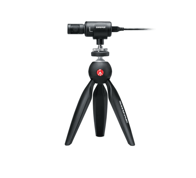 The Shure MV88+ Video Kit with Digital Stereo Condenser Microphone is the birth of a new portable audio and video recording kit is here, giving you all the tools, you need, right out of the box. The kit includes a Manfrotto PIXI tripod, phone celamp, and mount, as well as iOS and USB-C cables for next-level compatibility and connectivity. Just add your phone and you’ll be capturing professional-quality content wherever you are.