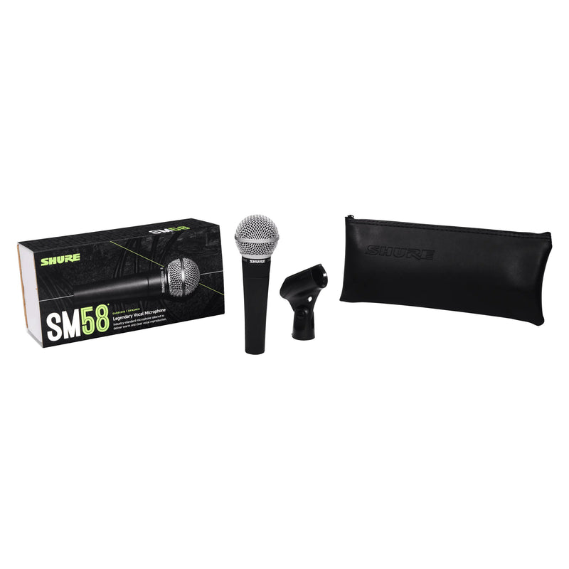 The legendary Shure SM58 vocal microphone is designed for professional vocal use in live performance, sound reinforcement, and studio recording. Its tailored vocal response for sound is a world standard for singing or speech. A highly effective, built-in spherical filter minimizes wind and breath "pop" noise. A unidirectional (cardioid) pickup pattern isolates the main sound source while minimizing unwanted background noise.