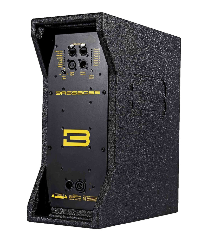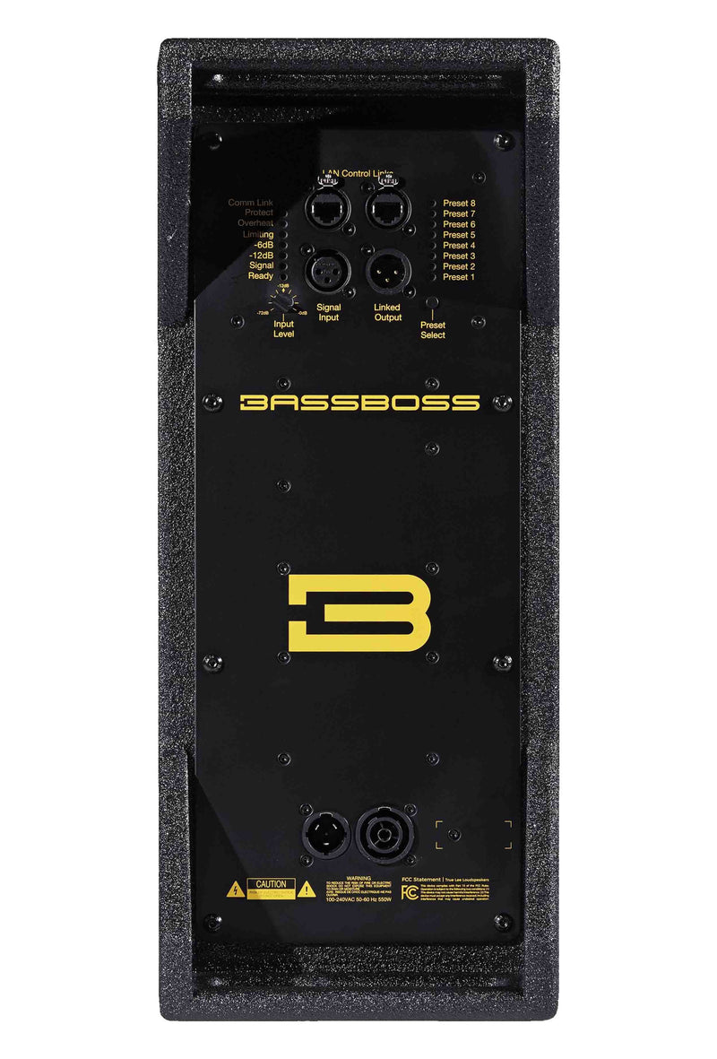 The BassBoss BB-SV9-MK3 Single 9-Inch Powered Micro Main Loudspeaker - Black is an Active 2-Way studio-reference quality full range monitor that can venture outside the studio thanks to its power, rugged finish, handles, grille, and easy to manage weight. With a Mind-Blowing Output-To-Size ratio, this self-powered unit deliveries a very compact and portable system approach for those who need premium quality and impressive output, perfect for sound providers and venues who need to cover distanced crowds without large, heavy, and obtrusive cabinets. The SV9-MK3 also provides extremely flat frequency response with a neutral character for critical monitoring duties. The all new MK3 series deliverers a suite of updates to the BASSBOSS line, improving clarity, performance, functionality, and safety via the new amplifiers, new DSP, custom control software, waterproof connectors, and more. The updated amplifiers + DSP feature much more powerful 96 kHz processors with pristine sound quality and eight touch-of-a-button on board presets. This new state-of-the-art asymmetrical Class D amplifier provides a true 650 Watts of RMS power and features enhanced power allocation between the HF and LF drivers. New “Control BASSBOSS” software provides additional computer-accessible presets, networked remote control, and future proofing remote DSP update capabilities as new BASSBOSS programming is developed and released. Each unit features dual ethernet ports with a built-in network switch for computer connectivity and cascading networking ability. IP65 waterproof connectors have been added to provide peace-of-mind in unpredictable environments, and the MK3 line offers 90-250VAC global power compatibility for use all over the world. This single 9” loudspeaker compares to much larger loudspeakers in response and output. Such performance from a much smaller enclosure is made possible by making decidedly different design and component choices than competitors.