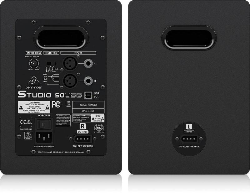 With its 150 ultra-clean Watts of digital output, delivered through separately powered drivers via a true bi-amping mode with 2 amplifiers per speaker, the STUDIO 50USB delivers high-resolution sound that really brings out the best in your music. You will notice that most competitors apply simple passive crossovers, which not only inaccurately separate the frequency spectrum but most importantly impact the drivers’ performance. Behringer has gone the extra mile, driving each woofer and tweeter with a separate amplifier for absolute signal integrity.