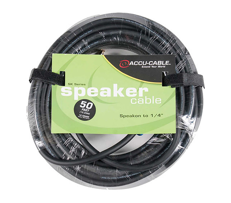 The Accu-Cable SK4-5012, 12 Gauge, Locking Speaker Connector to 1/4-Inch Cable - 50 Ft is designed to deliver reliable audio transmission in professional audio setups. Featuring a locking speaker connector on one end and a 1/4-inch connector on the other, this cable ensures secure and stable connections between your speakers and audio equipment. With its durable 12-gauge construction, the SK4-5012 provides both flexibility and robustness for various applications.