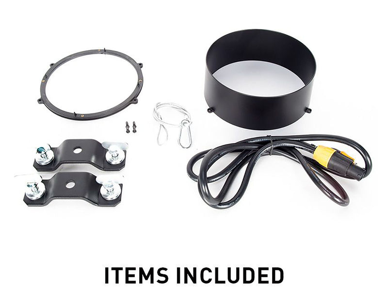 The fixture comes standard with locking power In/Out connections, locking 3-pin & 5-pin DMX In/Out sockets, color LCD menu display with 6 button control panel, multiple unit power linking, a multi-voltage universal auto switching power supply (AC100-240V), USB port to conveniently update firmware, and omega brackets with two hanging points.