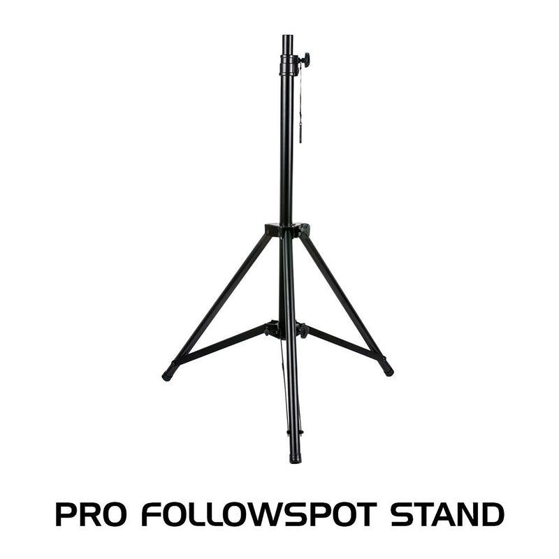 The ADJ Pro FS Stand Black lighting tripod stand for use with most follow spots and ellipsoidals. Compatible with ADJ’s FS Pan Glide. ADJ Pro FS Stand is a simple and functional lighting stand designed for use with various follow spots and ellipsoidal fixtures. The Pro FS Stand is a lightweight and portable stand constructed from a combination of aluminum and steel for stability. The black laminated exterior provides a professional look. It features a three-legged tripod base with tightening knobs for easy height adjustments. The adjustable height allows you to position your lighting fixtures at different angles for optimal coverage. The collapsible design makes it convenient for storage and transportation.