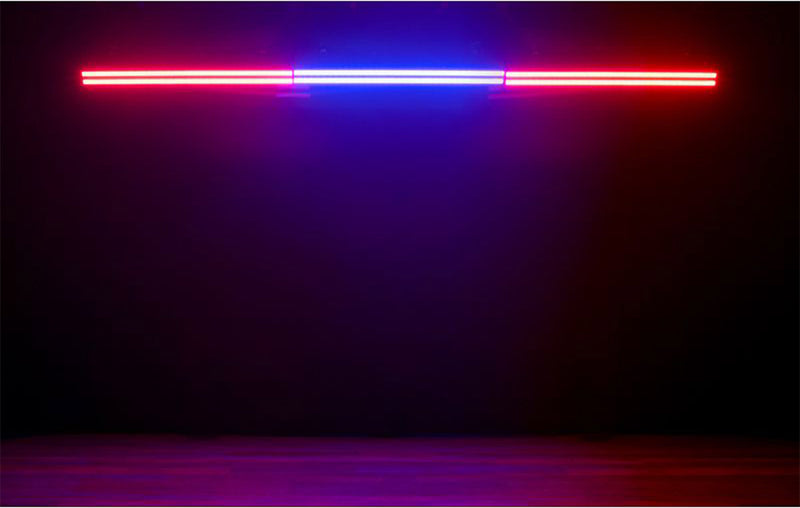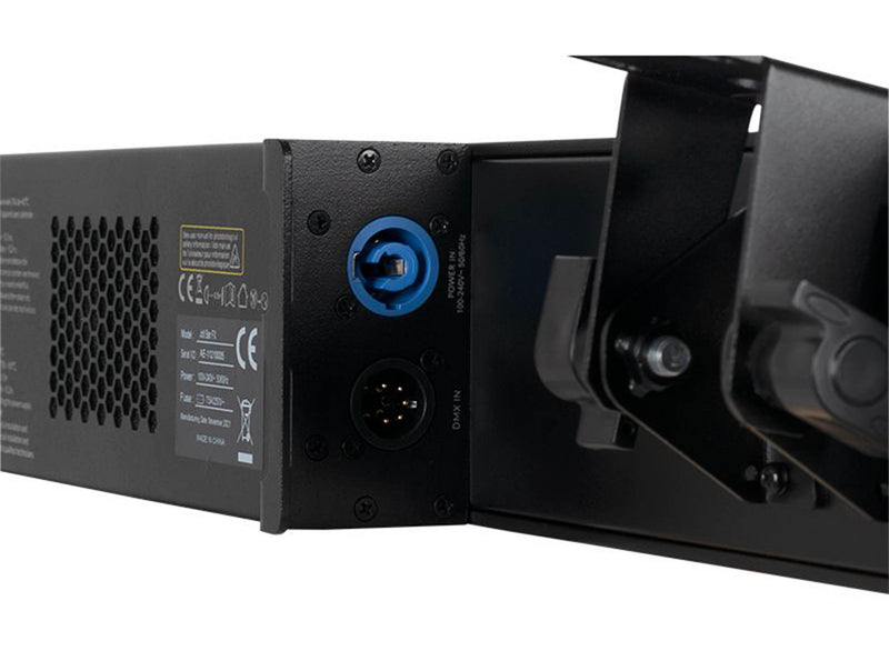 Measuring 1m in length (39.4”), the fixture is compact in its other dimensions (4.2”/107mm and 4.8”/123mm). It has a robust metal construction yet has been carefully engineered to keep its weight to a minimum (16.5lbs. / 7.5kg.), making it ideal for concert touring and event production applications. It is fitted with locking power input and output sockets, allowing multiple fixtures to be connected from a single power outlet, which are positioned on either side of the fixture together with the 5-pin DMX input and output sockets to allow convenient setup and neat cable runs.