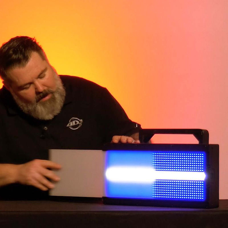 The ADJ Lighting Jolt Panel FXIP is an innovative multi-use strobe / wash / eye candy fixture. It is equipped with 800 x 0.5-Watt RGB SMD LEDs for color strobe, wash and eye candy effects, as well as 48 x 5-Watt white SMD LEDs located in the center of the fixture to create the traditional look of a strobe. Both types of LED are grouped into independent controllable zones (6 white and 40 color), allowing for the creation of eye-catching animated chase patterns. The Jolt Panel FXIP’s massive light output is specifically designed for large stages, nightclubs, live events and touring.