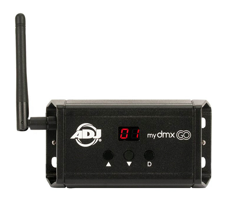 The ADJ MYDMX GO, DMX lighting control system is a revolutionary new lighting control system that is extremely powerful and incredibly easy to use. It combines a uniquely intuitive app-based control surface with a compact interface that connects wirelessly to an iPad, Android or Amazon Fire tablet and provides a standard 3-pin XLR output for connection to a lighting system.