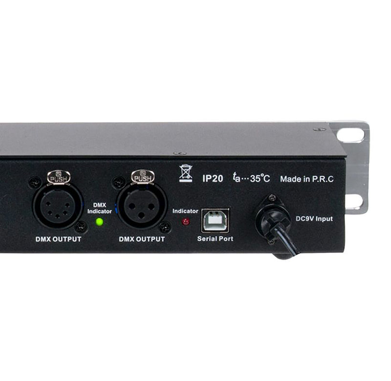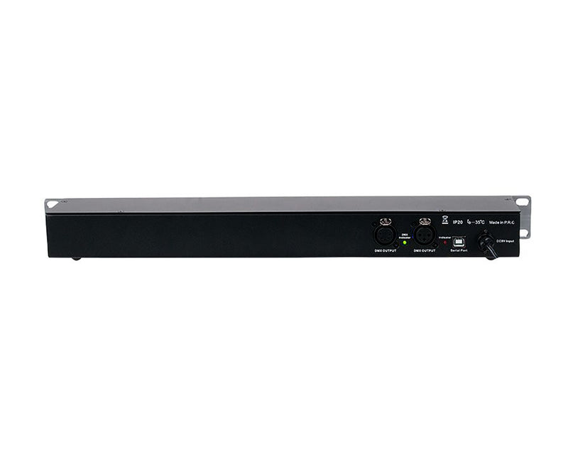 The ADJ MYDMX RM, Rackmount DMX control software and hardware system is a multi-platform DMX control software/hardware system (Windows and OSX Mac compatible). myDMX-RM has a new, robust, 19” rack mount, hardware dongle and exciting new features to take greater command of your light show. myDMX-RM allows you to program your light show with myDMX 3.0 software, upload programmed data to myDMX-RM then playback in stand-alone mode without a computer. This is the ideal control solution for clubs, bars, schools and event venues where you want to make it as simple as possible. Out of the package, myDMX 3.0 software will run in Express Mode; 512 “Live” DMX channels & 512 “Stand Alone” DMX channels (No 3D visualizer, Easy Remote or Midi features). myDMX-RM is a great solution for a lighting designer to leave at a venue so that their staff can trigger lighting scenes without the use of a computer or myDMX software.