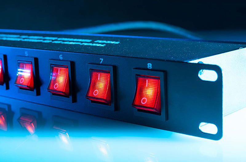 The ADJ PC-100A, 8-Channel AC Power Center is designed to eliminate so much of the clutter and messy wires associated with being a DJ. Make sure that you know where everything is with 8 lighted switches on the front as well as a resettable circuit breaker. There are eight 120V, 3 Prong Plug sockets on the rear of the unit making sure you never run short on power.