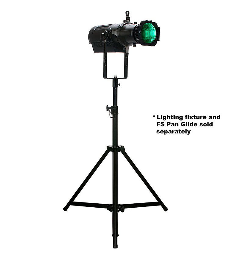The ADJ Pro FS Stand Black lighting tripod stand for use with most follow spots and ellipsoidals. Compatible with ADJ’s FS Pan Glide. ADJ Pro FS Stand is a simple and functional lighting stand designed for use with various follow spots and ellipsoidal fixtures. The Pro FS Stand is a lightweight and portable stand constructed from a combination of aluminum and steel for stability. The black laminated exterior provides a professional look. It features a three-legged tripod base with tightening knobs for easy height adjustments. The adjustable height allows you to position your lighting fixtures at different angles for optimal coverage. The collapsible design makes it convenient for storage and transportation.