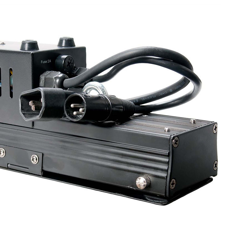 Ultra HEX Bar 12 professional features include: 5 DMX modes (6, 7, 8, 12, & 36 channel), 6 operational modes, 5 dimming curves, flicker free operation a 4-Button DMX menu with digital display, plus ADJ’s patent pending magnetic “Quick Align” end locking allows for a seamless output of light with no breaks of color. Daisy chain up to 7 units together via the fixtures built-in IEC In/Out power connectors.