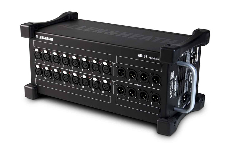 The Allen & Heath AB168 is a 48kHz portable remote AudioRack for use with Qu, Avantis, and SQ mixers, and with the AHM-64 audio matrix processor.