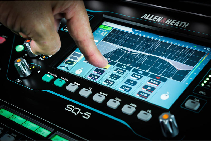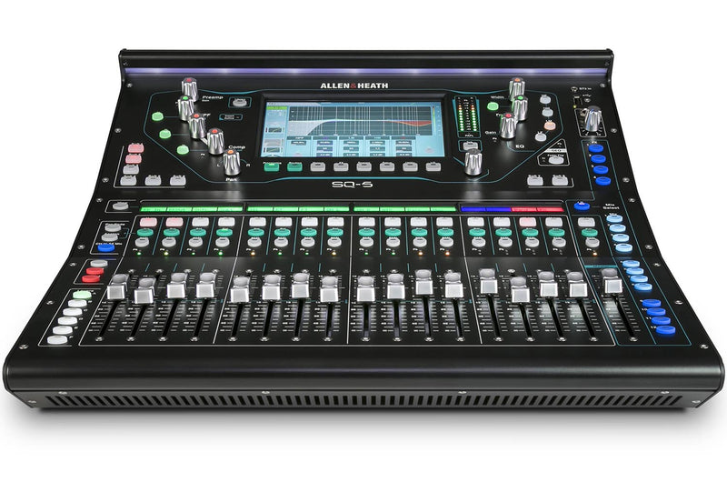 The Allen & Heath AH-SQ-5, 48-Channel and 36-Bus Digital Mixer with 16+1 Motorized Faders is built for professionals in the most demanding live sound applications. Delivering class-leading high-resolution audio with an ultra-low <0.7ms latency, the SQ-5 gives you unrivalled power and audio fidelity. The mixer has 16 onboard preamps and 8 stereo FX engines with dedicated return channels and access to the acclaimed Rack Extra FX library. 12 stereo mixes (configurable as groups or auxes) make SQ the perfect companion for in-ear monitoring setups, whilst Automatic Mic Mixing takes the strain in multi-mic environments. SQ-5 gives you all the tools to meet any requirement, from AV and corporate events to live productions and houses of worship.