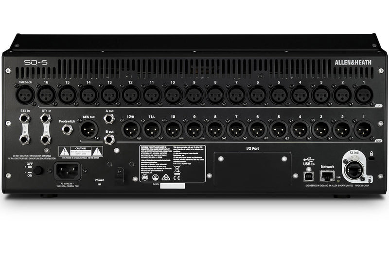 Multitrack recording is made simple with the Allen & Heath SQ-5, with its built-in 32 x 32 USB audio interface. Engineers at Sweetwater also appreciate the convenience of direct recording to a USB drive. A 64-channel I/O port is also present for connecting to network audio. And an SLink port allows for remote audio and I/O expansion.