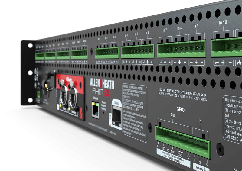 AHM-64’s SLink port allows plug 'n play connection to up to eight remote expanders from Allen & Heath’s extensive Everything I/O range, which includes wall mount, rack and portable options. With up to 268 routable system inputs and outputs, AHM-64 can cater for projects ranging from a single room to large, distributed spaces.