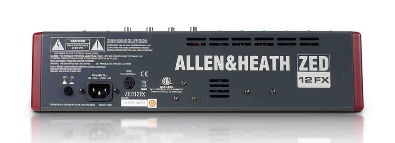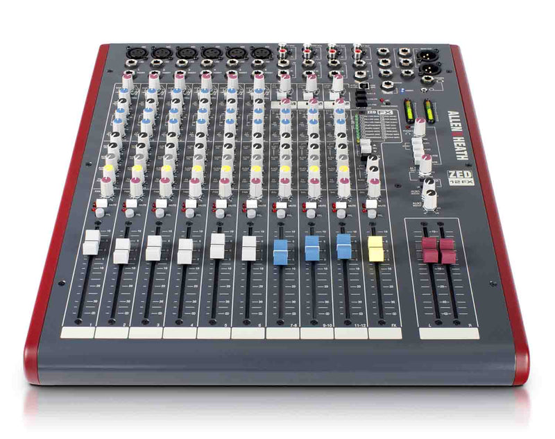 The Allen & Heath ZED-12FX is a Multipurpose 12-Channel Mixer with USB Audio Interface is ideal groups who need to travel light. Even with its small footprint, the 12FX squeezes in 4 auxiliary channels and swept semi-parametric EQ on top of the already impressive feature set including configurable USB audio in/out makes it easy to capture stereo recordings.