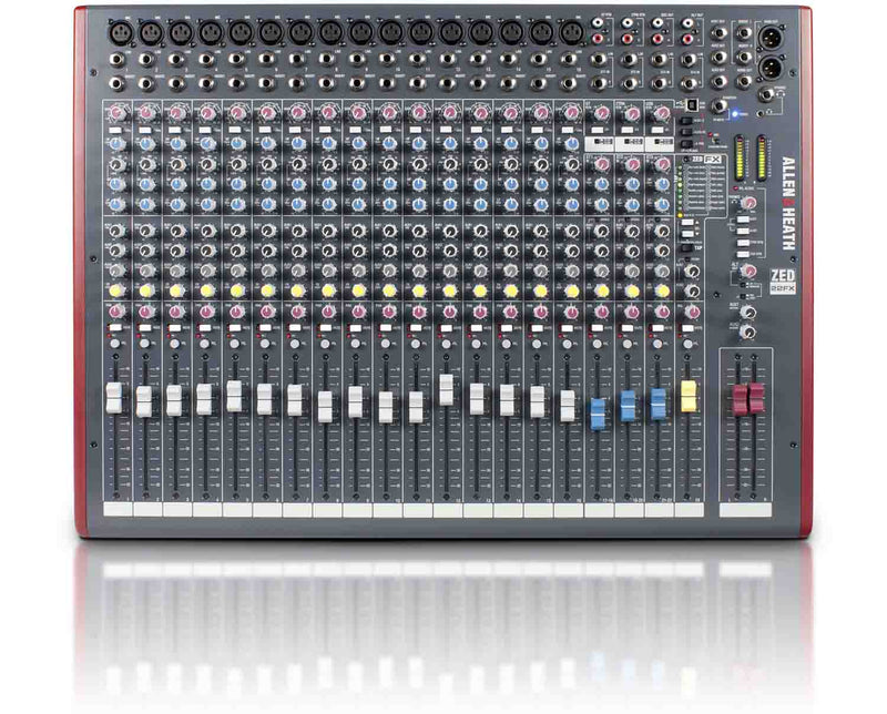 The Allen & Heath ZED-22FX is ideal for groups who need to travel light. Featuring configurable USB audio in/out makes it easy to capture stereo recordings. The ZED-22FX easily accommodates vocals, drums, guitar, bass and keys whilst also providing a dedicated FX bus and 16 internal time-delay effects – giving the whole mix extra ambience.