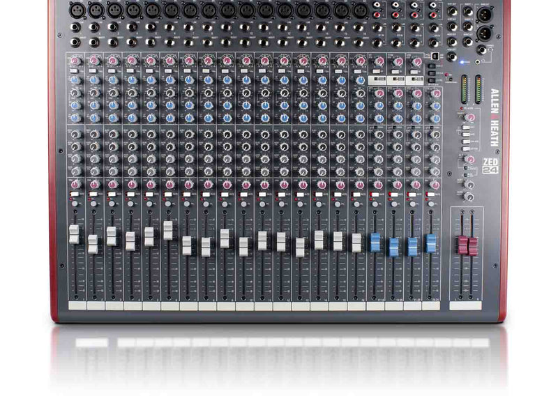 The Allen & Heath ZED-24 has an incredibly advanced feature-set for a mixer at this level – it has 23 independent sources to the mix, 10 independent outputs, 4 aux sends, Configurable USB audio in/out makes it easy to capture stereo recordings, playback and effects, a unique dual stereo input capability and some very advanced monitoring facilities. In fact, ZED-24 is so packed full of great features that you’d think it would cost much, much more!