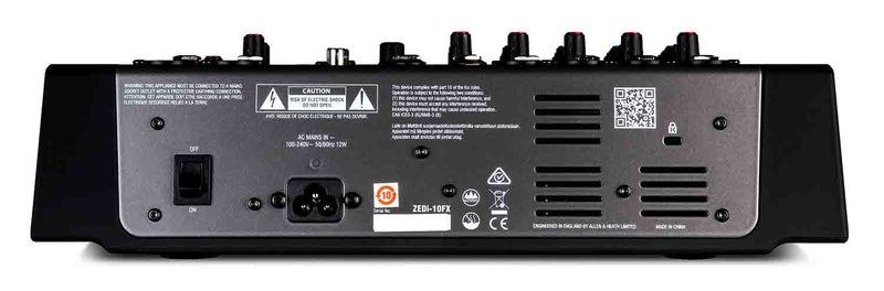 The Allen & Heath ZEDi-10FX is a Hybrid Compact Mixer / 4×4 USB Interface with FX that combines the robustness and hands-on control of an analog mixer with a high quality 4 x 4 USB interface and an outstanding multi-model FX unit, making it a perfect all-round choice for musicians, recording artists and venues. Whether it’s bouncing ideas around at home, performing live or recording tracks to share on YouTube and Soundcloud, ZEDi-10FX is a versatile companion for every step of the creative journey.