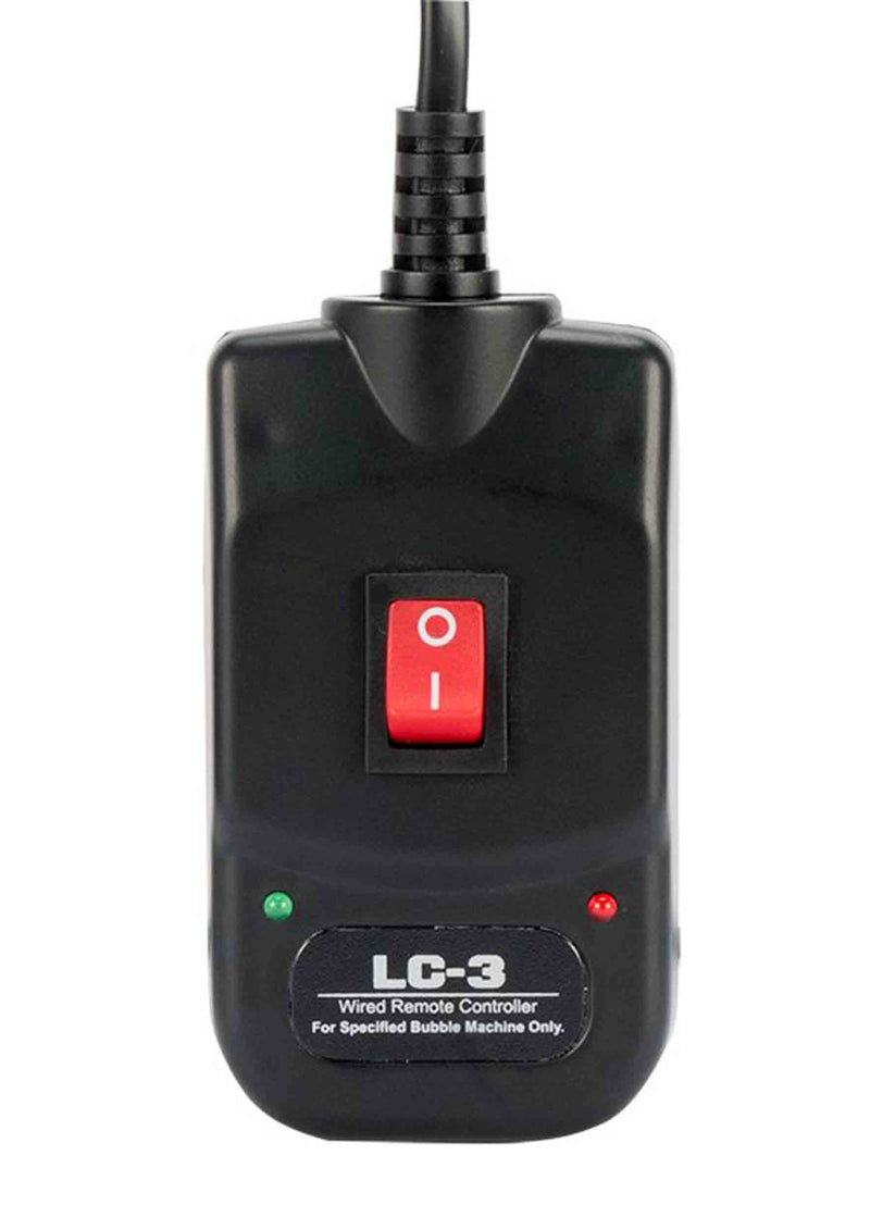 Featuring an intuitive ON/OFF switch on the rear and a convenient wired remote with a 25 ft. cable, it's incredibly user-friendly. The durable plastic casing, large high-velocity fan, and carrying handle make it a robust companion. It accommodates most bubble liquids, consumes minimal power (24W), and has a fluid consumption rate of 1 liter every two hours (120V: 20 ml/min, 230V: 11 ml/min).