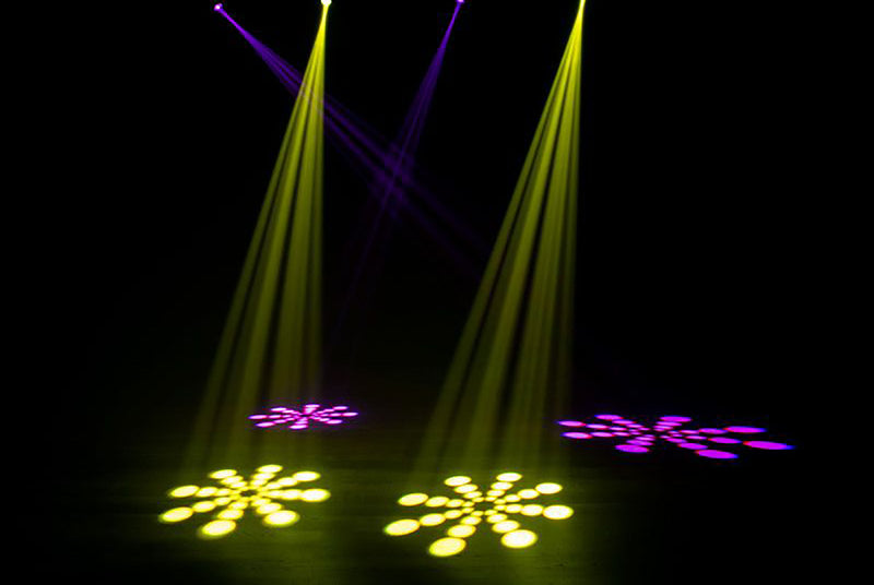 Featuring 7 colors plus white, 7 GOBOs plus spot on separate color wheels, the Stinger Spot 30 will give pure lighting excitement with its fast-moving beams and color changes. It has a pan and tilt inversion mode that makes one head do the opposite of another when linked together.