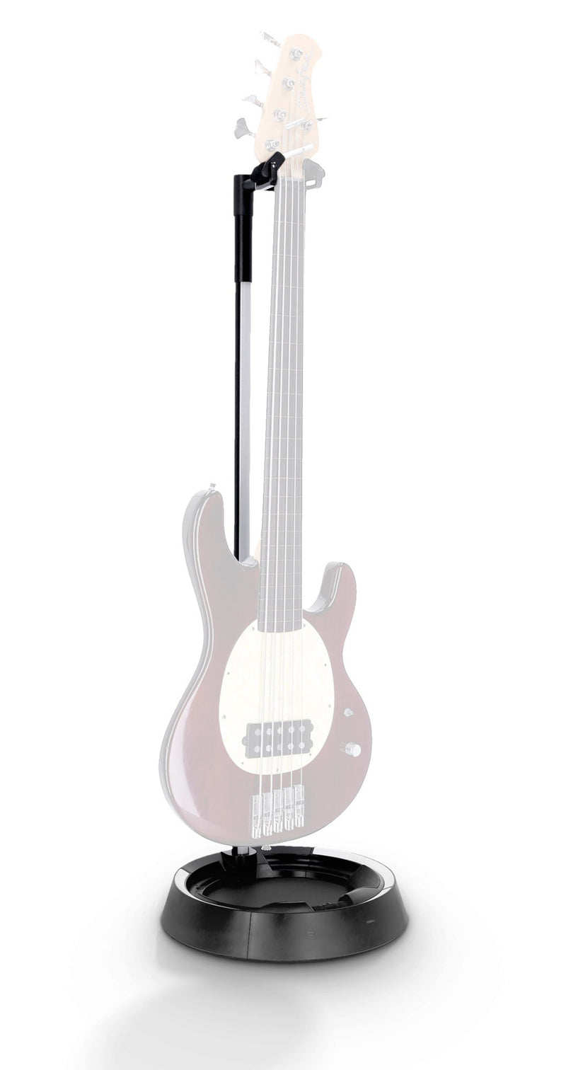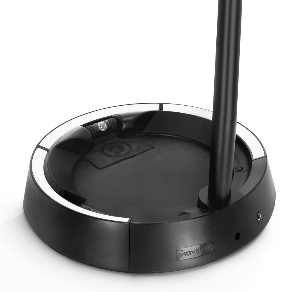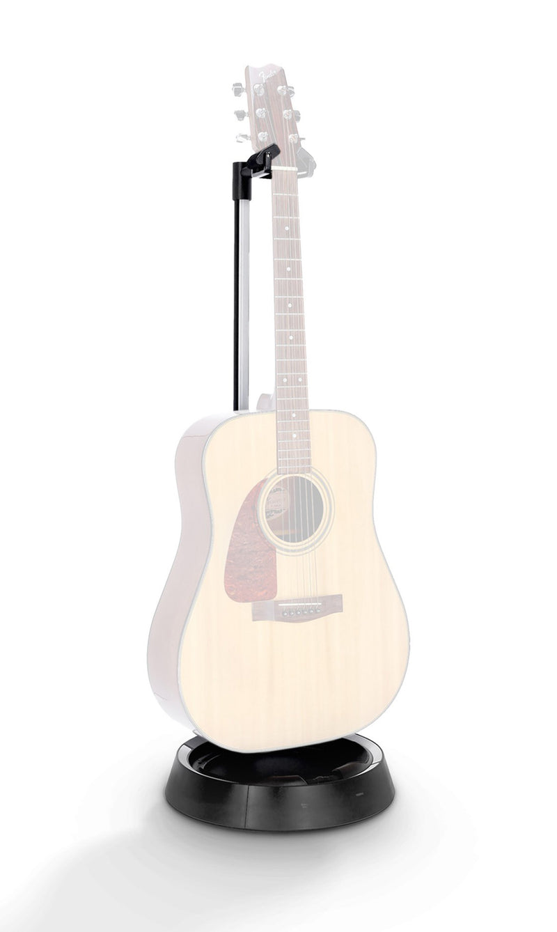 The Gravity Stands Guitar Glow Stand with Neckhug Design with RGB Lighting is an illuminated guitar stand that gives your acoustic guitar, electric guitar or bass maximum support and at the same time highlights it with color. The clever “neckhug” mechanism secures the guitar at the nut against slipping and opens automatically when the instrument is lifted out of the stand. In this way, it holds your guitar or bass safely and securely and, with its soft support surfaces, ensures that your musical instrument remains in perfect condition.