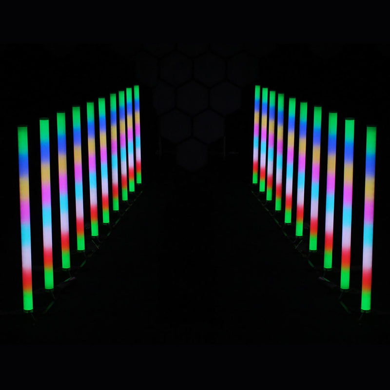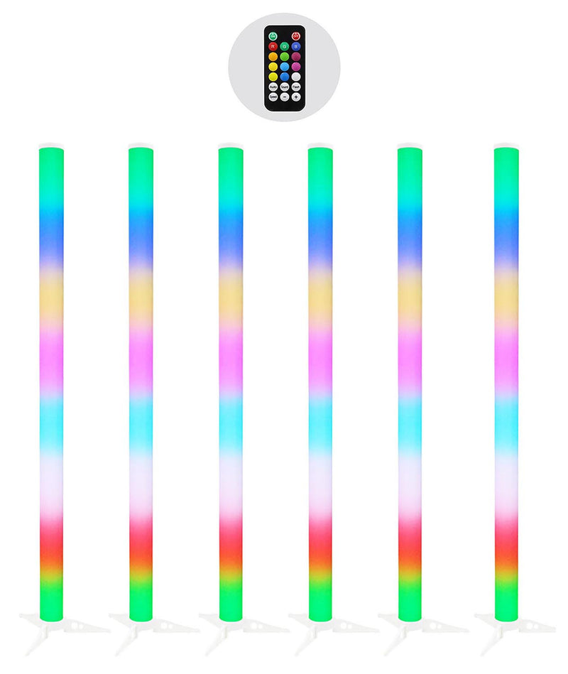 It is 6 Pack of Galaxy Tube is a color-changing LED effect that can be mounted vertically, horizontally, or free-standing with the included easy fit feet. The rechargeable lithium battery offers a run time of up to 12 hours from a single charge, and with no power, cables to connect you are free to set up the unit wherever you want. The tube will operate in chase, fade, static, and sound active modes and is supplied with a handy IR remote.