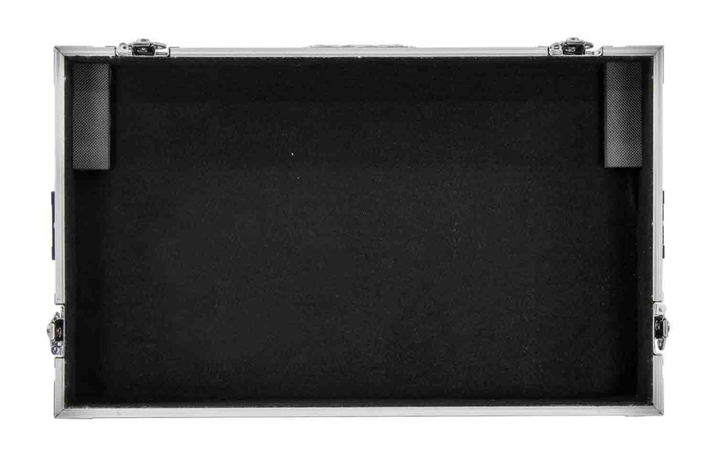 On the inside of the case, beveled-foam cutouts on each corner are custom built to fit the DDJ-REV7 controller, raising it slightly to allow for efficient DJing. A cable management port in the back and removable front panel give you access to all the necessary controls and headphone/microphone jacks while keeping things organized. The case is made with rubber feet for an antiskid bottom and has steel-ball corners for increased durability.