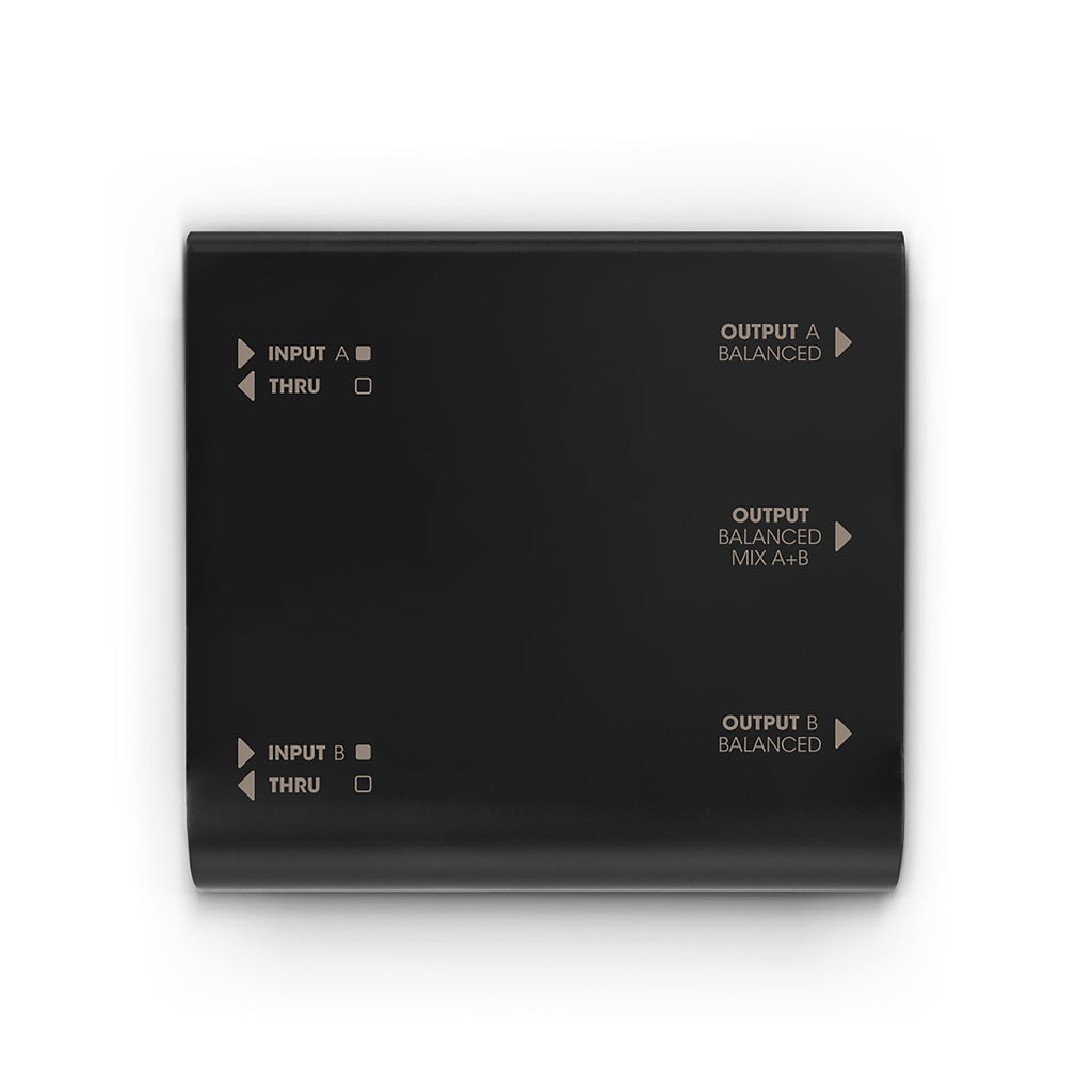 Naturally, the Palmer inn has a THRU output to transmit the input signal to the instrument amplifier. With 30 dB pre-attenuation activated, the Palmer inn is also optionally looped in between the amplifier output and loudspeaker unit if the sound shaping from the amplifier is to be recorded too, instead of the “raw” instrument signal. An especially practical feature is that - in addition to the individual outputs for both channels - it also offers a sum output with the signal of both channels. This saves on mixer channels.