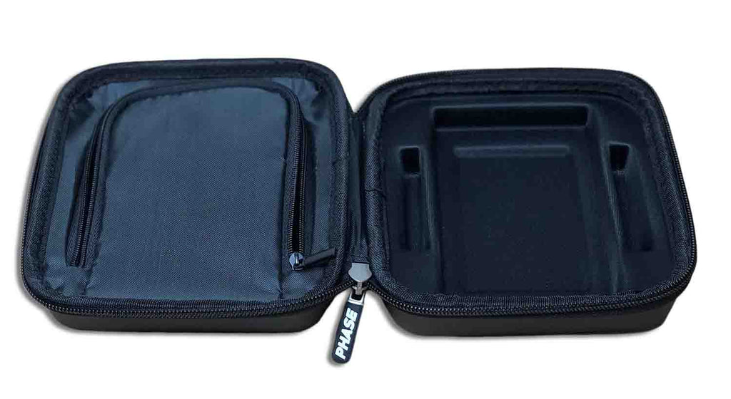 The Phase Case is the ideal travel case for the MWM Phase wireless controller. It is custom designed to fit both the Phase Essential and Phase Ultimate packs. It holds up to one receiver and four remotes. An inner zippered compartment is available to store cables and small accessories. Extra magnetic stickers can be stashed in the open space underneath the receiver. The Phase Case is compact and easily fits in most DJ bags.