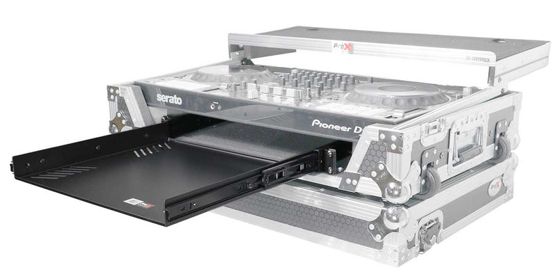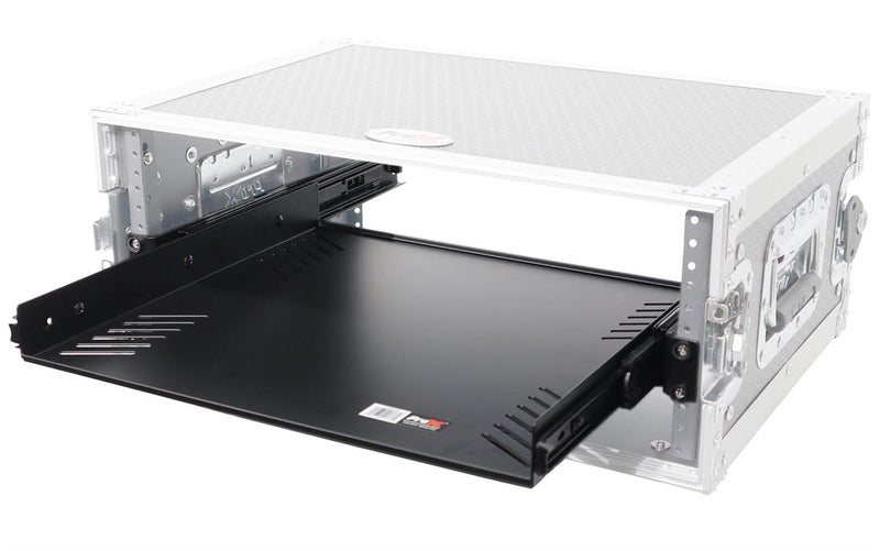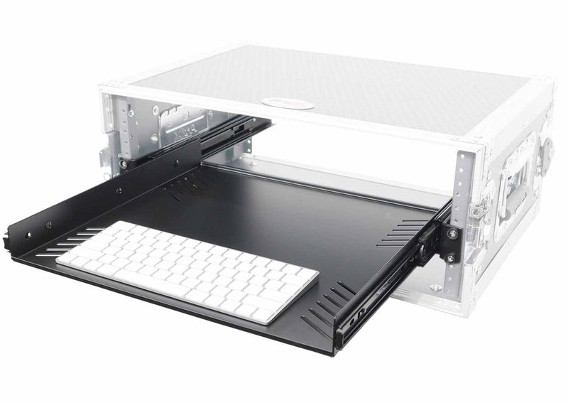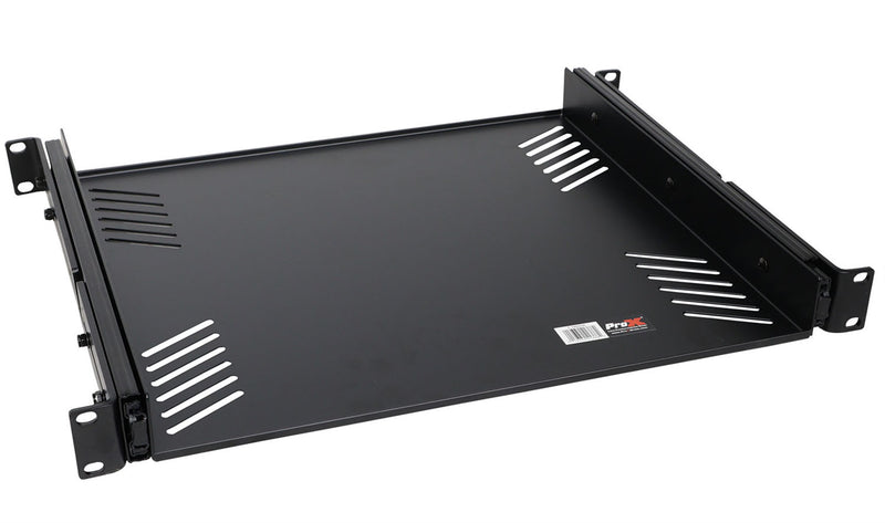 The ProX T-1RDTR is a 1U ventilated sliding rack tray designed for quick and convenient access to essential gear in a standard 19" rack. Perfect for storing microphones, pedals, audio interfaces, small mixers, MIDI controllers, tools, and more, it features smooth ball-bearing slides and a stop-lock mechanism for secure operation. The low-profile drawer with side vents promotes airflow, while the included faceplate keeps items safely in place during use and transport. Built from durable steel with a black powder-coated finish, this tray is ideal for DJs, musicians, IT techs, and AV professionals.
