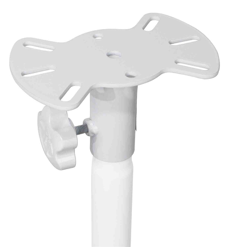 The ProX X-SSMPWH is a Speaker Stand Mounting Plate for Speakers and Moving Head White. The ProX X-SSMP WH Speaker Stand Mounting Plate for Speakers and Accessories is an Exterior cabinet stands mounting flange with a tightening knob, for a 1 3/8" diameter speaker stand top tube. These can be used to mount studio-style speakers, lighting, and accessories, and could be used with a platform to mount projectors. Will not break like the ones made of plastic. The Speaker Stand is shown for illustration purposes only and is not included.